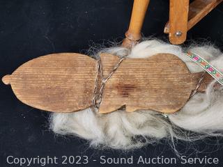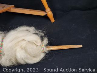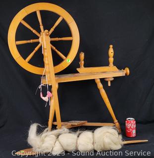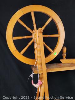 Lot #0013: Antique Treadle 18" Spinning Wheel w/Paddle/Needle