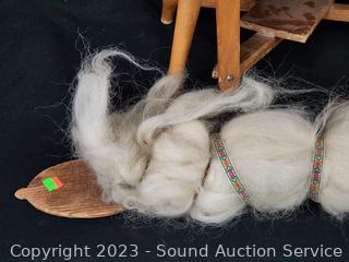 Appears to be functioning as intended. 36" H x 28" L overall. 32" L needle/paddle with some wool.