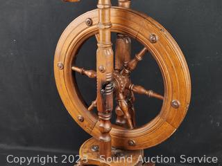 Lot #0014: Antique Walnut? Treadle 16" Spinning Wheel