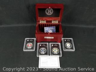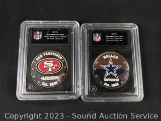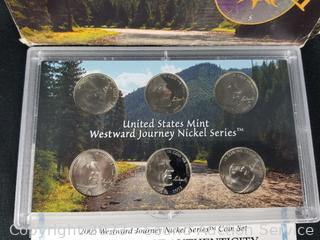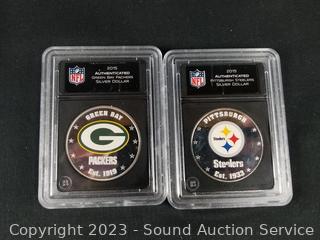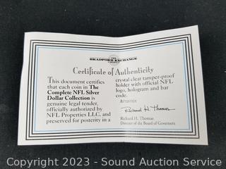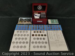 4 2015 Fiji Silver $1's Pittsburgh Steelers, San Fransisco 49ers, Green Bay Packers, Dallas Cowboys. 2005 Westward Journey Nickel Series Coin Set, Lincoln Head Cent Album 1909-1940 partially full, Jefferson Nickel Album starting at 1996 mostly empty. ATTN: We are not coin or currency experts or graders, please use your own judgement when bidding.