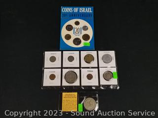 1962 Old Mexican Silver Dollar, 20th Anniversary 1948-68 Coins of Israel & other mixed foreign coins. ATTN: We are not coin or currency experts or graders, please use your own judgement when bidding.