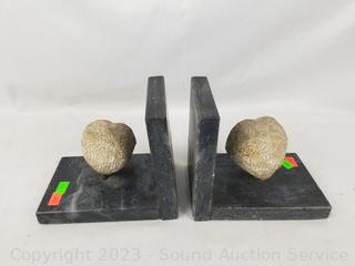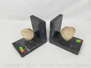 Lot #0173: Assorted Metal Decor & Stone Bookends