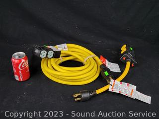 Lot #0161: Firman 25ft 4-Way Generator Power Cord & 4-Way Pig Tail