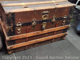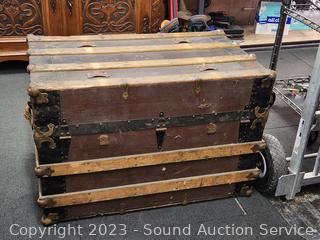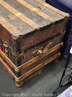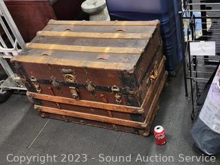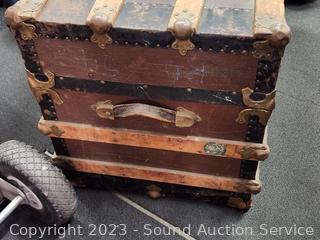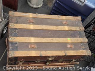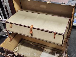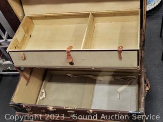 Lot #0004q: Flat Top Antique Trunk w/Inserts