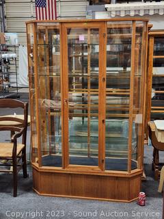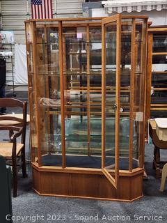 Lot #0043: Oak Locking Glass Curio/Display Cabinet w/3 Glass Shelves