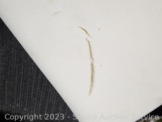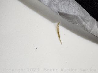 See a 6" crack/tear in foam. Some minor dirty spots on foam, don't see any issues. with cover.