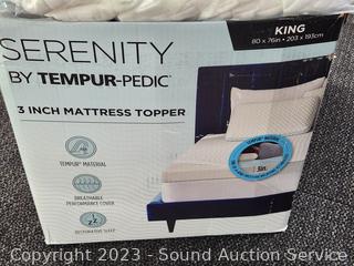 Lot #0239: Serenity Tempur-Pedic King Memory Foam 3" Mattress Topper w/Cover