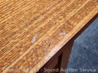 Minor scuff on the top, veneer finish. 22" H x 19.5" W x 17.75" D.