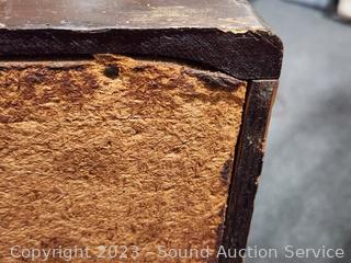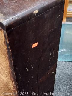35" H x 23.75" W x 7.75" D. Some scuffs, wear to finish, olde patina.