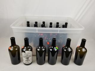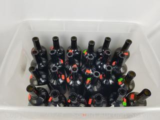 Lot #0079: Tote w/24ct Vtg. Green Glass Bottles