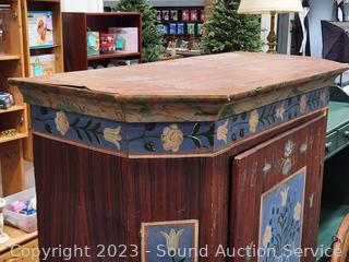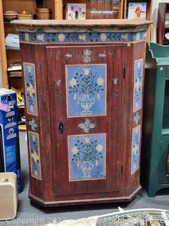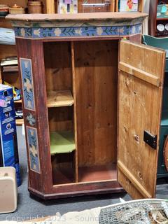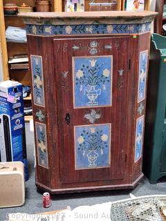 Lot #0004: Vtg. Hand Painted Country Cupboard/Armoire