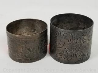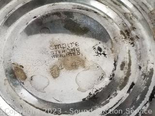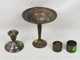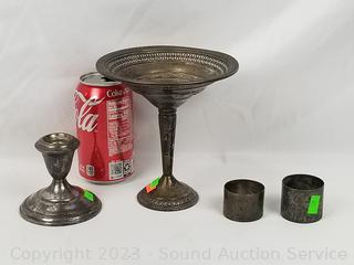 Lot #0091: 2 Sterling Napkin Rings, Weighted Candleholder & Compote