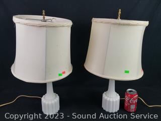 Lot #0198: 2 Vintage Milk Glass 20" Table Lamps