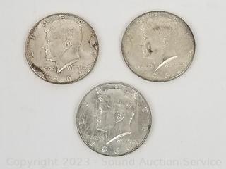 Lot #0146: (3) 1964 90% Silver US Kennedy Half Dollars