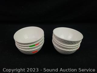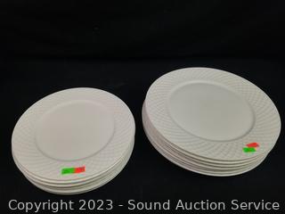 (8) dinner plates, (8) lunch plates, (8) 4.5" berry bowls, (8) 6.5" cereal bowls, (8) 8" large bowls. Don't see any issues.