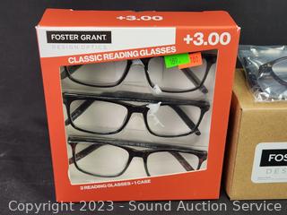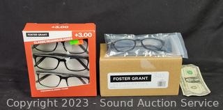 Lot #0189: 5 Foster Grant Classic +3.0 Reading Glasses w/1 Case