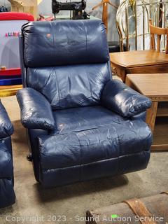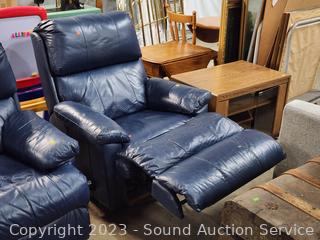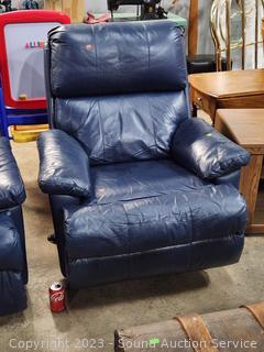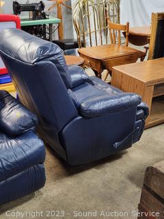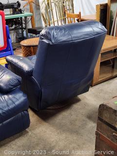 Lot #0020: Action Industries Blue Leather Swivel Recliner