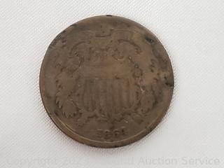 Lot #0145: Antique 1864 US Shield 2 Cent Piece