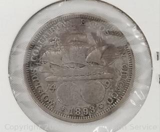 Lot #0148: Antique 1893 US 90% Silver Columbian 1/2 Dollar