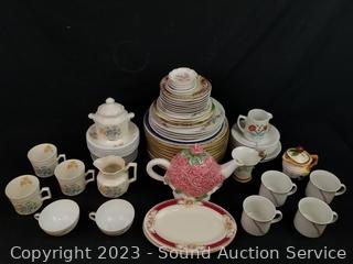Lot #0097: Assorted Fine China Teacups, Saucers, Plates
