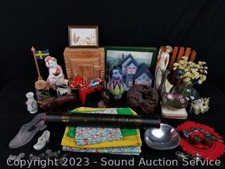 318 Lots including Gray Upholstered Sofa, Power Lift Chair, Lane Blue Leather Love Seat, Blue Leather Swivel Recliner, Vtg. Waterfall Cedar Lined Hope Chest, Vtg. Vanity Dressers, Link-Taylor Seybrook Manor Solid Maple Bedroom Set, Tempur-Pedic Full Mattress w/Ivory Vinyl Headboard & Steel Frame, Dining & Cafe Tables, Bev Doolittle Artwork, Vtg. Baseball Cards, Assorted Kitchen Cookware, 84pc Franciscan Desert Rose Fine China Dish Set, Jewelry, Silver Coins, Pillows, Towels, Artwork, Various Household Goods, Christmas Decor & More!!!