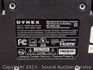 Lot #0131: Dynex 19" 720p LCD TV w/Manual, AV Cables & Remote
