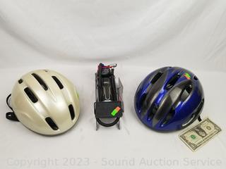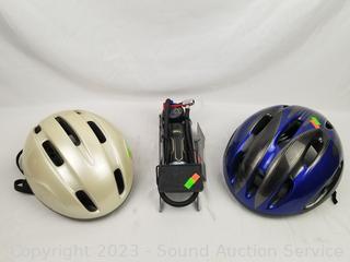 Lot #0095: Foot Bicycle Pump & 2 Helmets