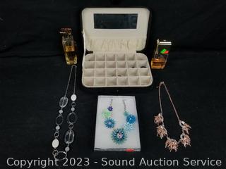 Lot #0071: Jewelry Box, Assorted Jewelry & 2 Perfumes