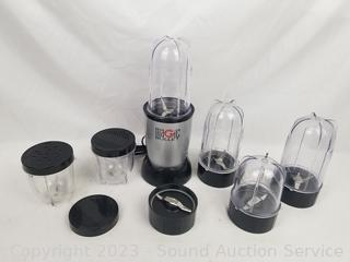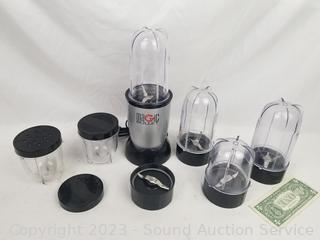 Lot #0241: Magic Bullet w/6 Containers, 3 Lids, 4 Blending Lids