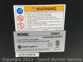 Lot #0230: Royal 1216X Crosscut Paper Shredder