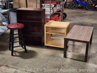 Lot #0300: Stool, Bookshelf, Coffee Table & Rolling Table