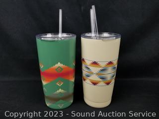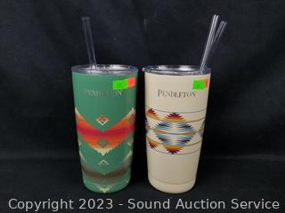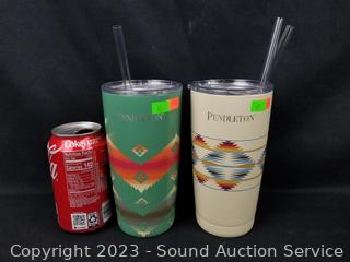 Lot #0067: 2 Pendleton 20oz Vacuum Insulated Travel Tumblers w/Straws