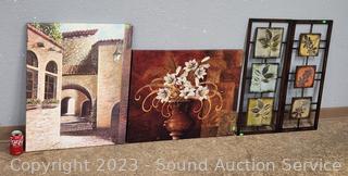 Lot #0088: 2pc Metal Art Wall Decor & Giclee Artwork