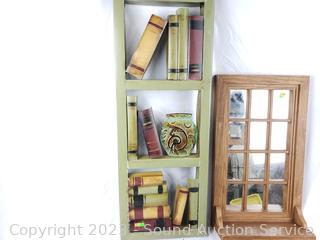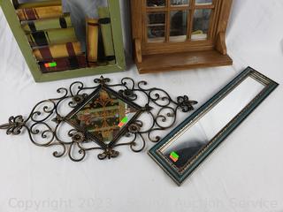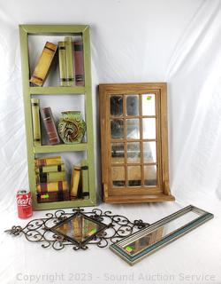 Lot #0167: 3 Decorative Mirrors & Metal Art Bookshelf Wall Decor