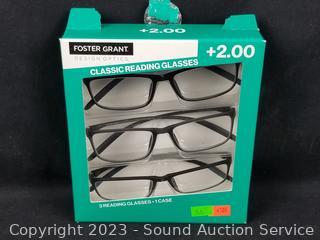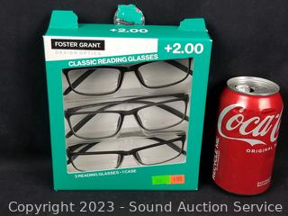 Lot #0248: 3 Foster Grant Classic +2.0 Reading Glasses