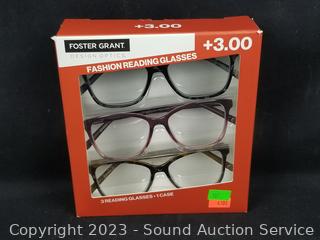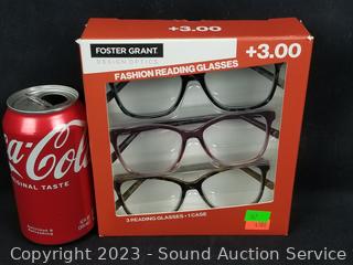 Lot #0107: 3 Foster Grant Fashion +3.0 Reading Glasses