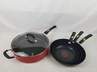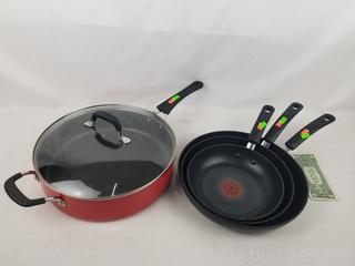 Lot #0049: 3 T-Fal Skillets & 1 Tramontina Fry Pan w/Lid