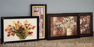 Lot #0032: 4pc Interior Accent Floral/Abstract Print Artwork
