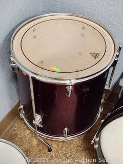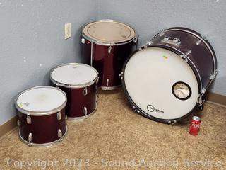 Bass drum, floor tom, high tome, mid tom. Signs of wear from use, don't see any major issues. Comes with drums only no accessories.