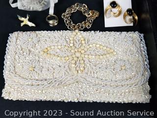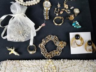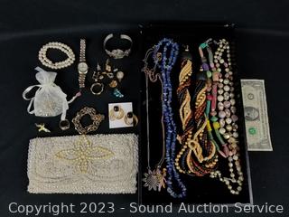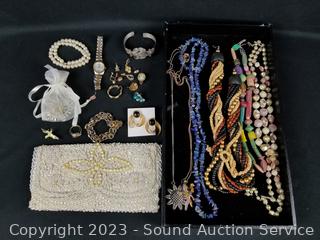 Lot #0116: Assorted Fashion Jewelry, Pulsar Watch & Sequin Clutch