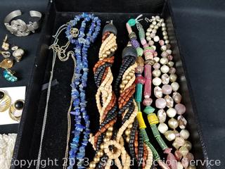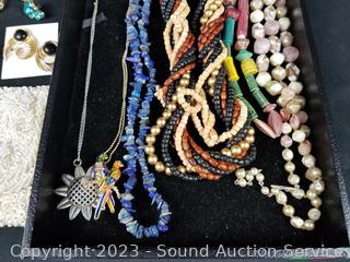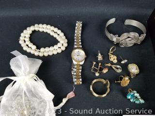 Quartz watch, appears to need a new battery. Earrings, necklaces, bracelets. Refer to photos for more info.