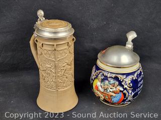 Lot #0263: Assorted German Pottery/Pewter/Glass Steins/Mugs