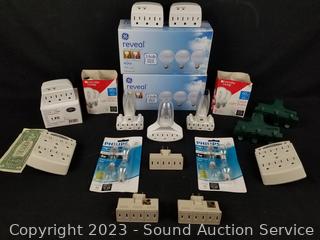 Lot #0188: Assorted Night Lights, Multi-Outlet Plugs, Light Bulbs