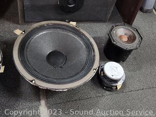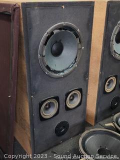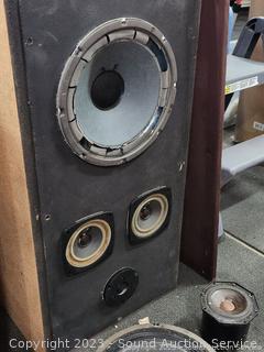 10" speakers in cabinet have damage to surrounds. Does come with replacement speakers, Majority of speakers are working. All with various wear. As is.