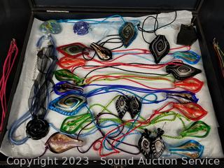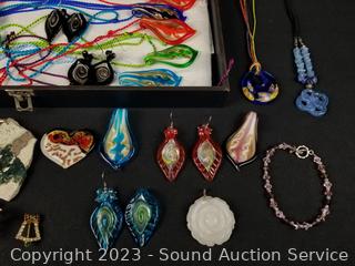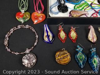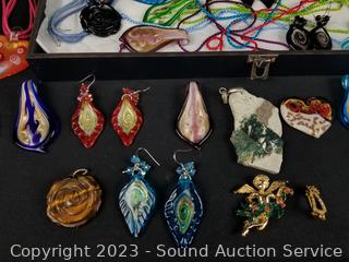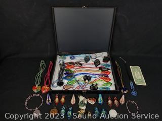Lot #0168: Case w/Assorted Art Glass Pendant & Earrings w/Case