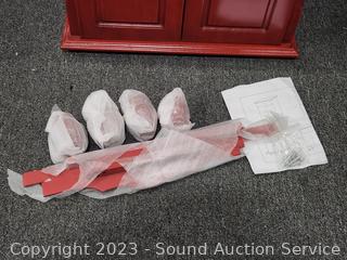 Doesn't appear to have been used. Feet and backsplash is not attached, still wrapped in original foam in the drawer. 22.5" H x 20-3/8" x 15".