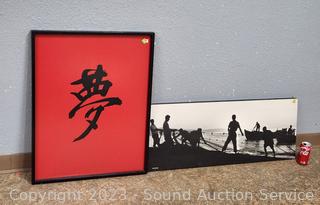 Lot #0092: Fisherman Silhouette Photo & Chinese Character Artwork