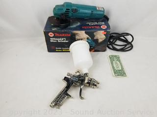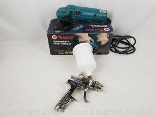 Lot #0159: Makita 4" Disc Grinder & Astro Pneumatic Gravity Feed Spray Gun