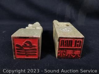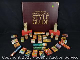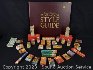 Lot #0208: Miniature Grocery Cartons, Stone Oriental Stamps, Paint & Color Style Guide