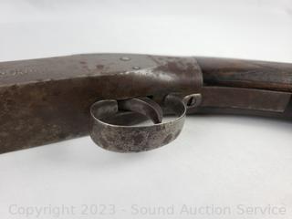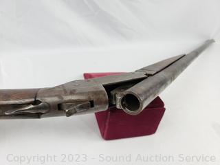 Don't see a serial or gauge, appears to be 16GA. Some scuffs, signs of wear from use. Appears to be in firing condition. 45.5" long, 30" barrel. Preview at Sound Auction Service. Picked up at South Sound Guns Lacey WA. In accordance with U.S. law, this lot must either be picked up at South Sound Guns Lacey, Washington or shipped to a U.S. licensed firearms dealer (FFL) of the buyer's designation. Handguns will be shipped via USPS Priority Mail; shotguns & rifles will be shipped according to South Sound Guns standards and in accordance with U.S. laws. All shipping and handling charges will be paid by the buyer and billed by South Sound Guns. All transfer fees will be paid by the buyer at South Sound Guns at the price of $20 per item. Any and all waiting periods will be determined by South Sound Guns. Buyers must present copy of Sound Auction paid invoice.
